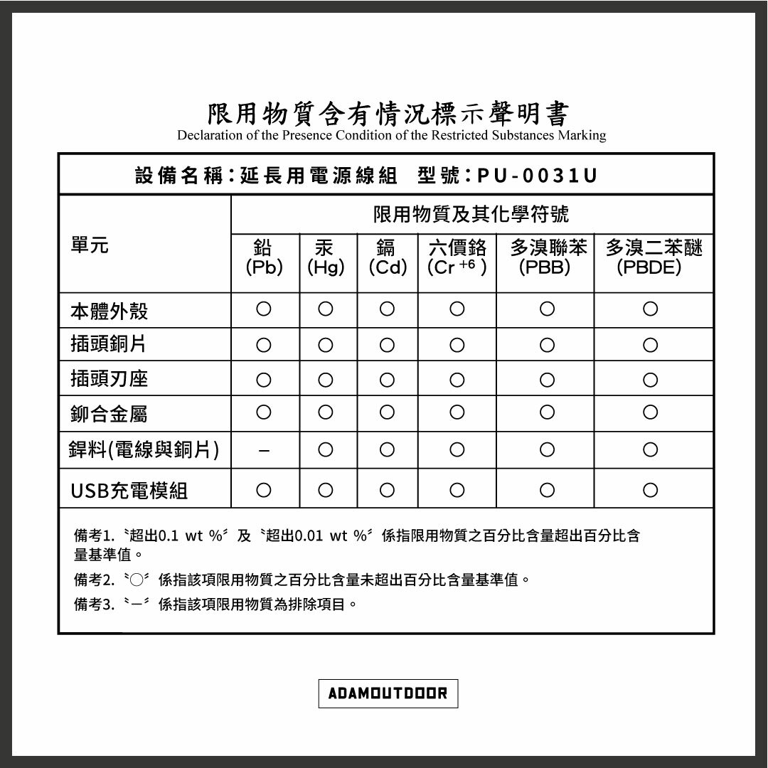 台灣RoHS-限用物質含有情況報告