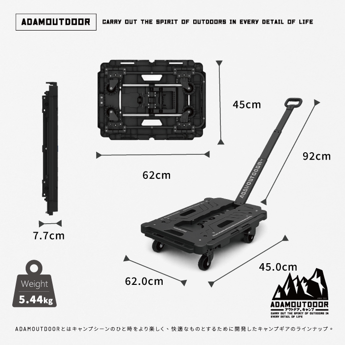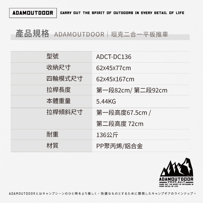 | 抵達營位,把手收折,立刻轉換為平板推車模式 |