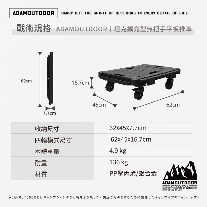 ☑ 可結合ADCT-DC136坦克二合一平板推車